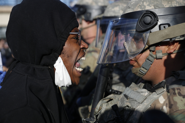 미국 '흑인사망' 시위현장 주방위군과 대치 중인 시위대. AP연합뉴스