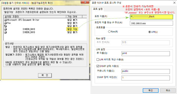 단, 공문서 발급이 정식 지원되는 네트워크 프린터일 경우에 해당됨.