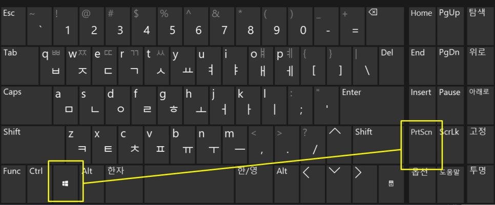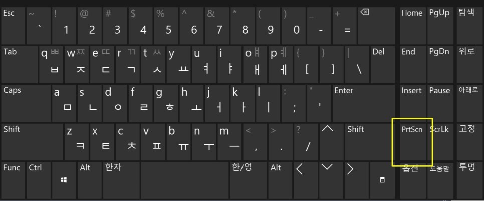 키보드에 따라 "PrtScn", "PrntScrn", "Print Scr", "Prt Sc" 등 얼추 유사한 단어로 [Print Screen] 키가 명명되어 있고요.
