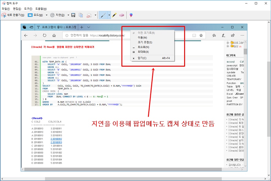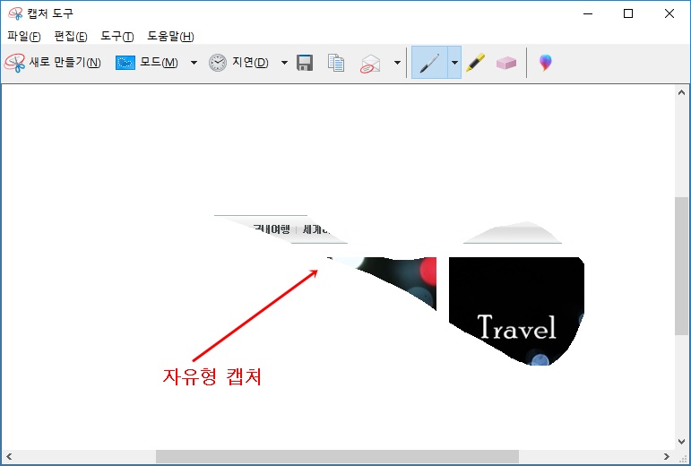 윈도우10 캡처 도구 프로그램 창에 바로 보여 지면서