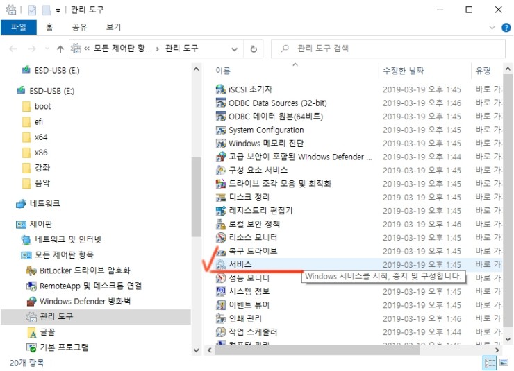 2. 제어판에서 관리도구를 찾으면 됩니다.