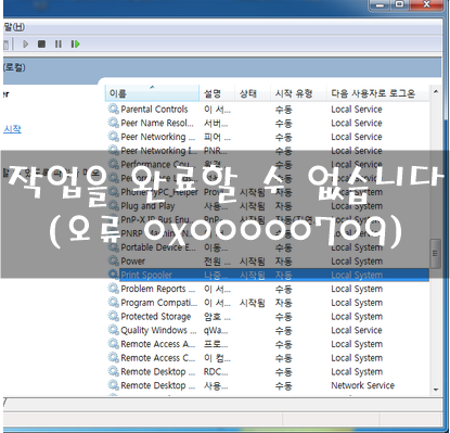 작업을 완료할 수 없습니다. 메시지가 뜨는경우에.. 전에 포스팅한 방법으로 조치를 합니다.
