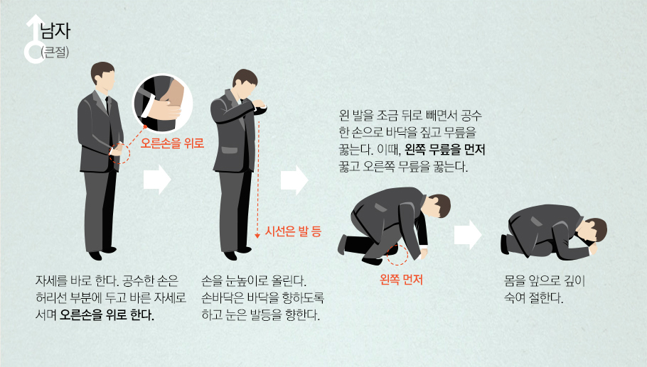 3 재배 영좌 앞에 일어서서 잠깐 묵념 또는 두 번 절한다.