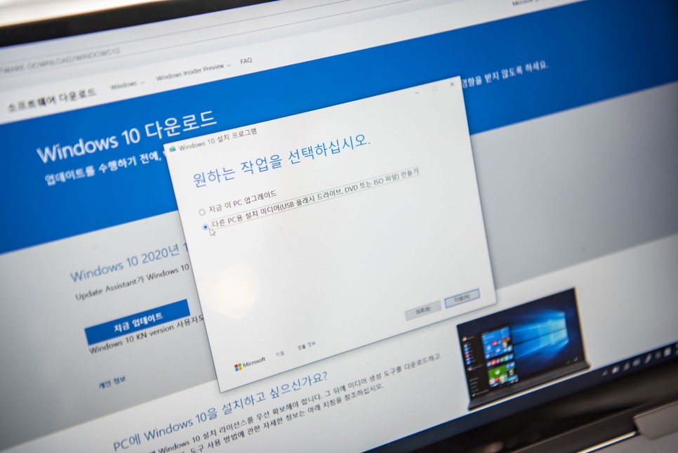 중요한 것은 선택을 두 번째의 다른 PC용 설치 미디어 만들기를 선택하셔야 합니다.