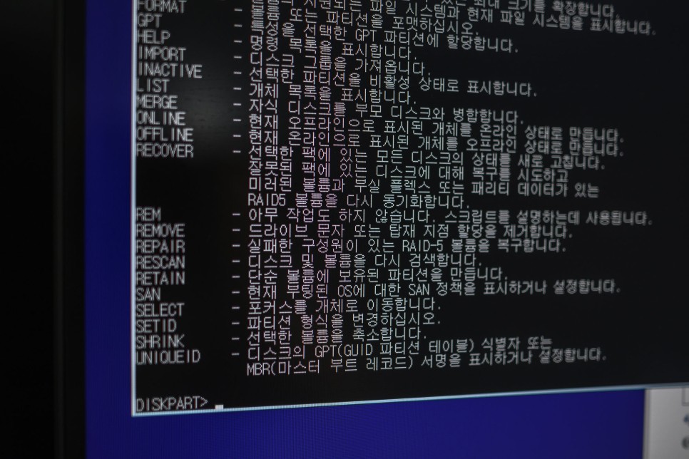 예로 "select disk 0" 이렇게요.