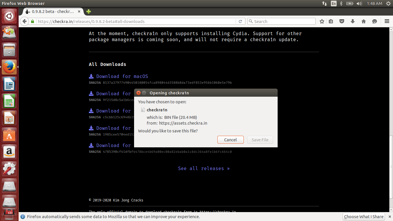 Download 폴더에 checkra1n 파일이 받아졌습니다.