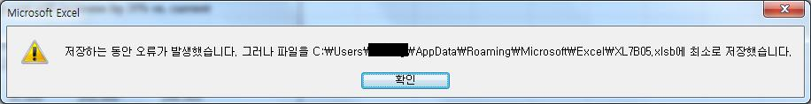 자, 이럴때는 침착하게, 심호흡 한번 하고~ 혈압을 낮춘 다음에 저장할 때 에러메시지를 잘 보면, 임시 파일을 어딘가 저장했다고 아래와 같은 메세지가 나오는데요,
