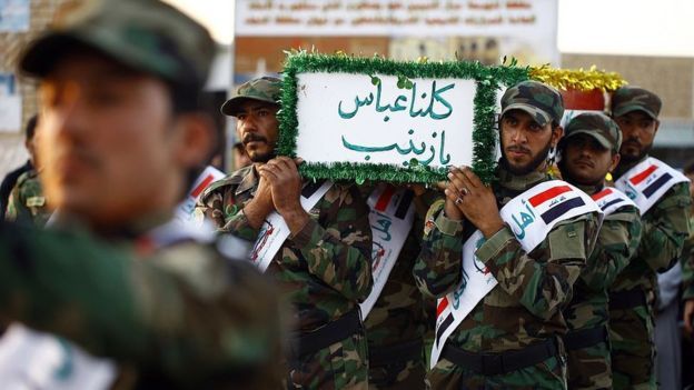 (시리아 아사드정권을 지원하는 이란 시아파 군사들. 사진출처: AFP)