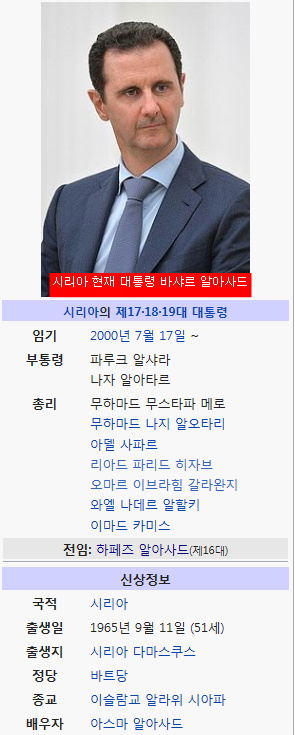 1. 바샤르 알아사드 대통령 현 독재 정권(시아파) VS 민주화를 요구하는 반정부군 (수니파)