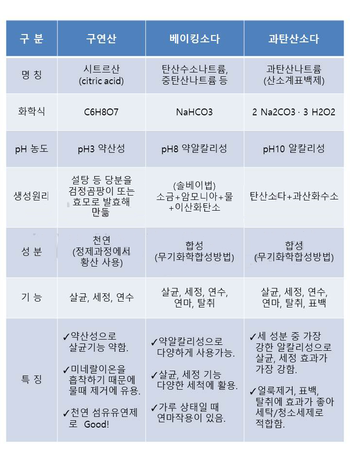 청소에 많이쓰는 구연산, 베이킹소다, 과탄산소다에 대해