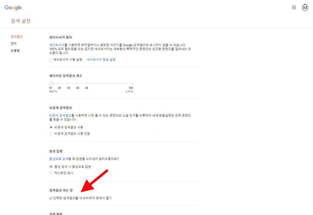 구글에서 검색 후 결과 리스트를 클릭하면 같은 창에서 웹페이지가 이동해서 불편할 때가 있습니다. 간단한 설정 변경으로 새탭으로 열수 있는 방법이 있습니다.