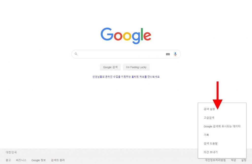 구글 첫 페이지에서 오른쪽아래 설정 버튼을 클릭합니다.