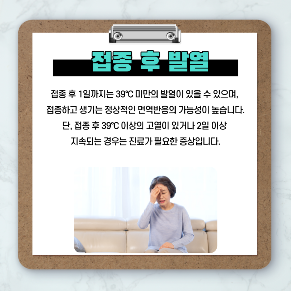 접종 후 1일까지는 39℃ 미만의 발열이 있을 수 있으며,