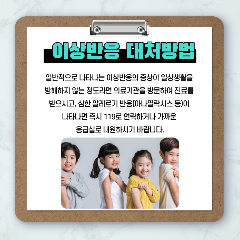 - 접종 후 최소 3일간은 주의깊게 관찰하고 고열이 있거나