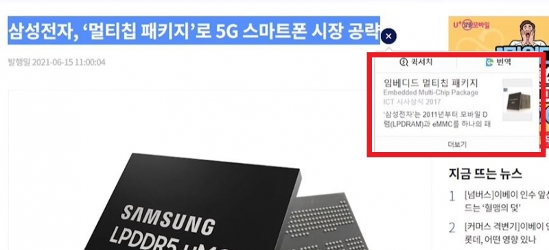 네이버는 UI/UX가 좋고, 텍스트를 드래그하면 바로 검색까지 이어지는 '퀵서치' 기능이 있다.