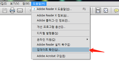 1. 어도비 리더를 들어가 도움말의 업데이트 확인을 눌러줍니다.