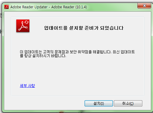 이런 경우는 간단하게 pdf 뷰어 프로그램을 업그레이드 시켜주는 것으로 쉽게 해결이 가능합니다