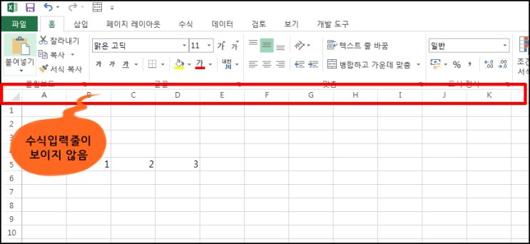 어떤 지인님이 위의 이미지에서 보시는바와같이 요렇게 수식입력줄이 보이지 않는다고 하십니다.