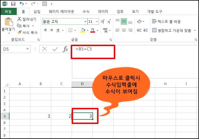 수식을 쓸때도 셀에 직접 입력하기 보다는 수식입력줄에 입력하면 더욱 편리하고 말이죠..