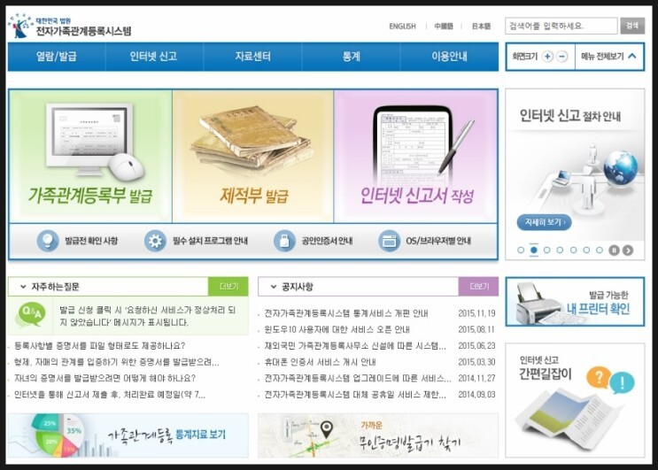 대한민국 법원 전자가족관계등록시스템에서 알려주는 발급방법 공유합니다.