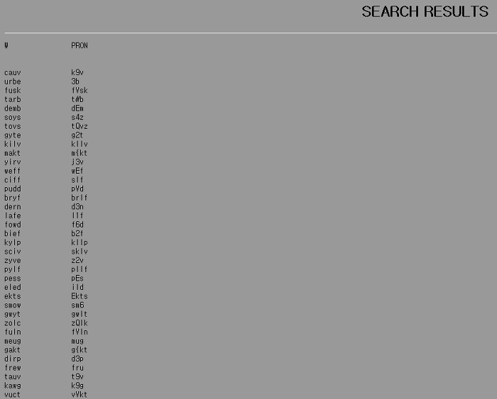 비단어 : 알파벳 조합으로는 가능하지만 실제로 사용되는 단어가 아닌 조합. (출처 : 네이버 사전)