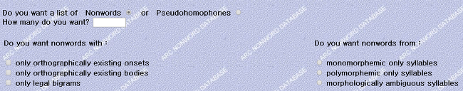 Nonwords(비단어) 또는 Pseudohomophones(유사 비단어)를 선택하신 뒤, 원하는 수를 입력합니다.
