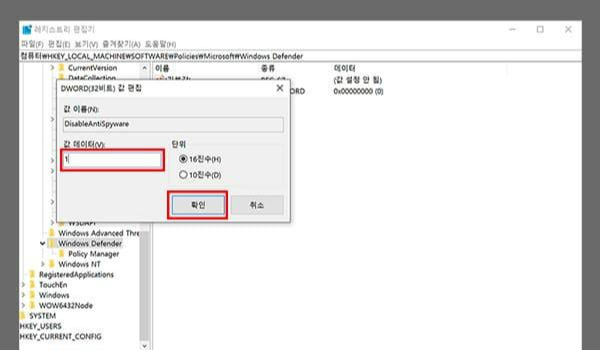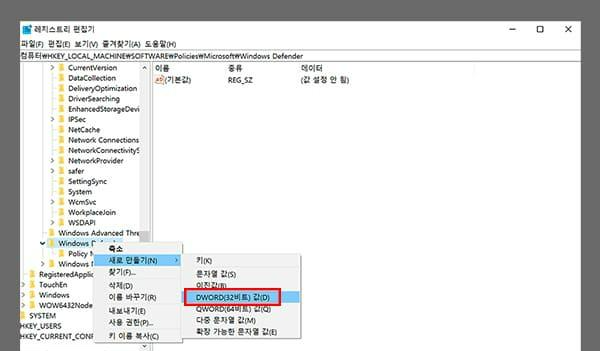 레지스트리를 이용하는 방법은 윈도우 디펜더 끄기 중 약간 긴 과정이 필요합니다. 레지스트리를 통해 윈도우 디펜더를 영구적으로 비활성화할 수 있습니다.