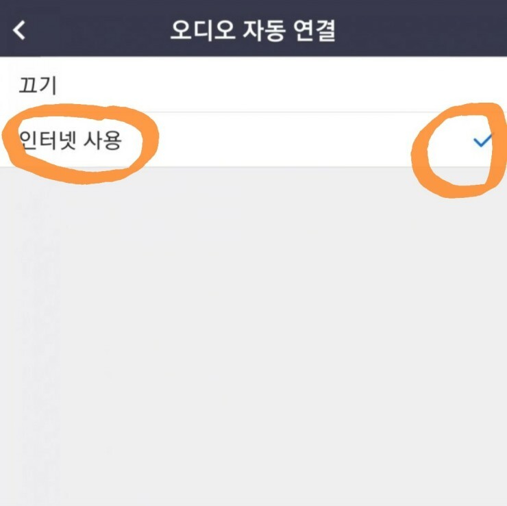 침착하게 맨 위에 있는 오디오 자동 연결을 눌러주세요