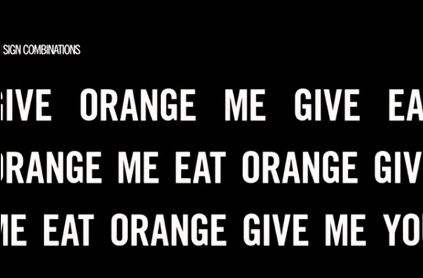 예를들어 "줘 오랜지 나 줘 먹을래" 로 말할때도, "오렌지 나 먹을래 오렌지 줘" 로 말할때도 있고, "나 먹을래 오렌지 줘 나"