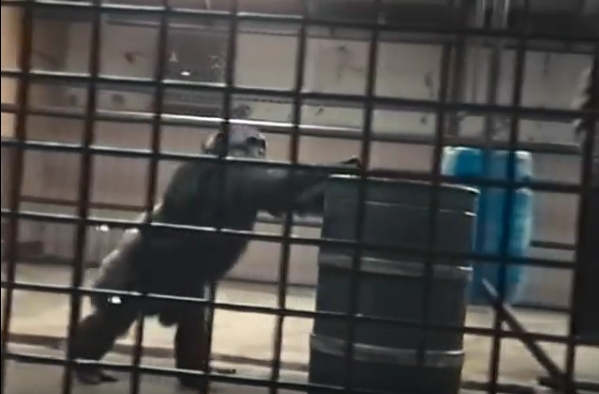 하지만 결국 사고가 터지고 만다. 그녀를 쓰러뜨려 바짓가랑이를 잡고 사육장 안을 미친듯이 돌아다녔다.