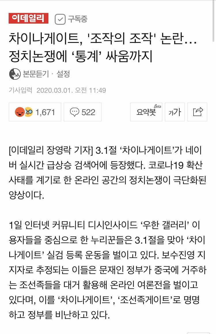 어제 늦은 저녁을 기준으로 "차이나게이트"라는 검색어가 네이버 실검 1위를 달리며 현제 3.1절 오후까지 실검에 자리하고 있습니다.