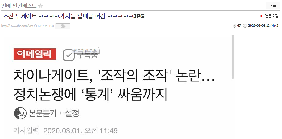 맨 처음 네이버 뉴스에 떴었는데 많은 분들이 그 글이 어디서 오신지도 모르고 그 이야기를 하셔서 제가 그 글의 출처를 확인했습니다.