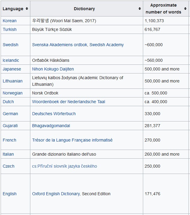 그래서 단어수도 존나 많아서 세계 14위에 랭크 됐다