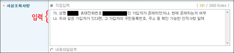 4-2. 그다음, 대상기관 입력란 밑에 있는 '사실조회 사항'을 먼저 입력합니다.