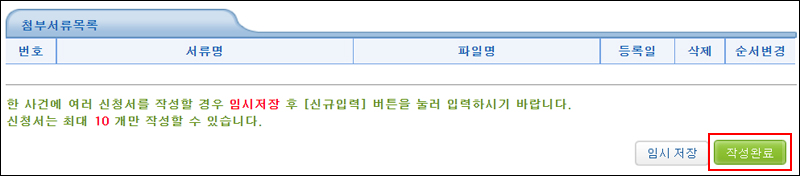 6. 조회 기관 입력을 다 끝냈으면 쭉~ 내려서 '작성 완료' 버튼을 누릅니다.
