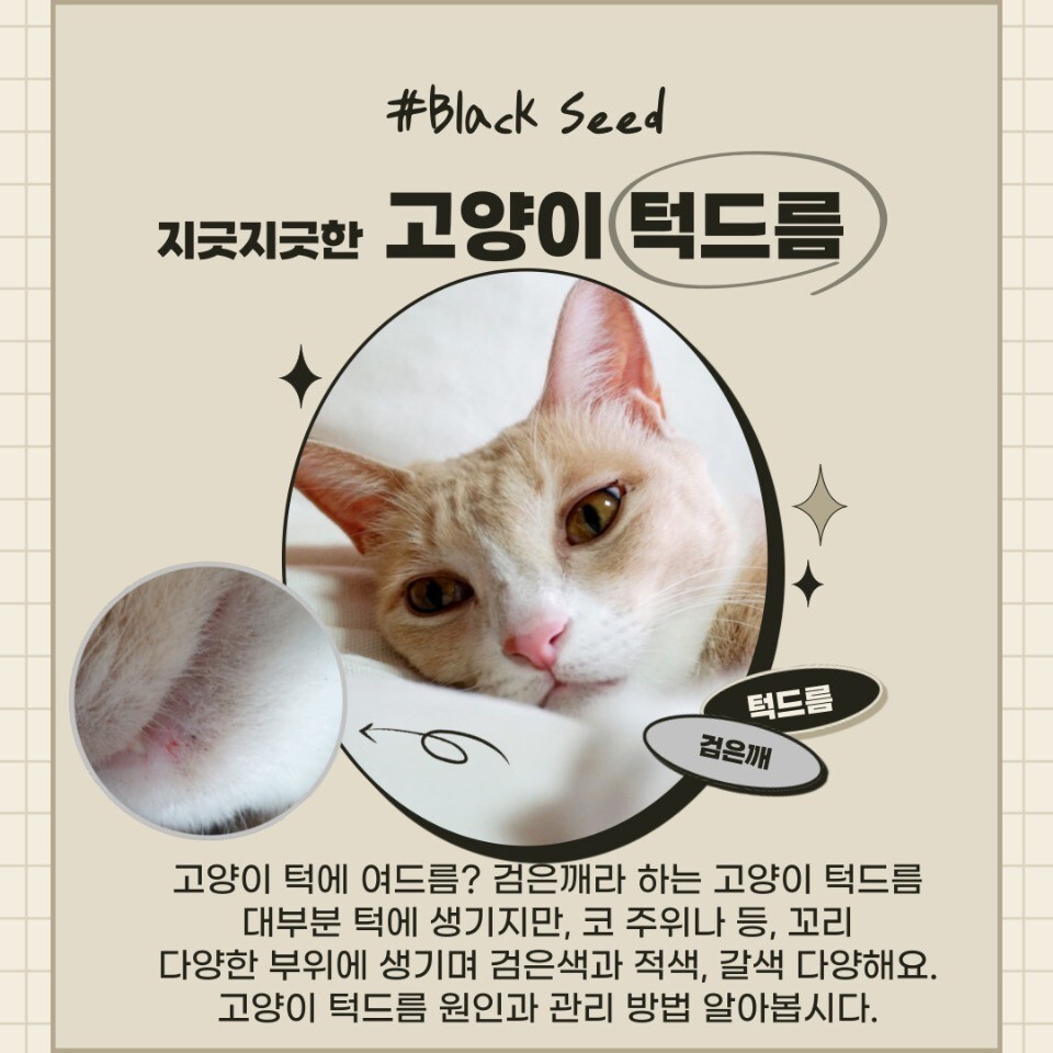 턱 주변에 검은깨를 잔뜩 뿌려놓은 것 같다고 해서 고양이 검은깨, 고양이 까만 깨라고도 불리는데요.