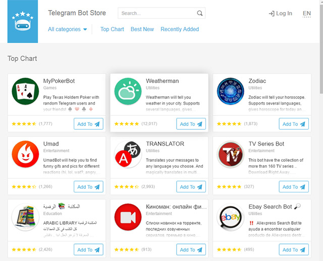 이 또한 텔레그램의 킬러 기능입니다. 텔레그램 메신저 채팅창 내에 다양한 기능을 접목할 수 있게 해줍니다. 예컨대 위키백과를 검색한다거나, 특정 사이트의 게시물 업데이트 정보를 채팅으로 받아본다거나, 웹툰 업데이트 소식을 받아보는 식이지요. 가능성은 무궁무진합니다. 단순히 메신저가 아닌 플랫폼으로서 가능성을 보여주는 기능으로, 잘만 쓴다면 웬만한 자동화 뺨치는 효율을 구가할 수 있습니다. 더 자세한 정보는 이곳 텔레그램 봇 스토어를 참조하세요!