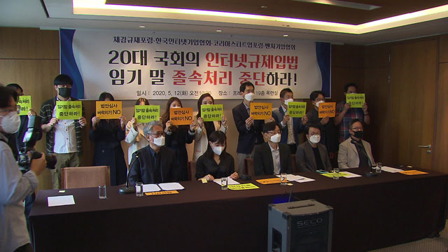 한국인터넷기업협회 등 인터넷 업계는 "졸속처리"라며 21대 국회에서 재논의하자는 입장인 반면, 국회와 정부는 "업계에서 과한 우려를 하고 있다"며 법안 처리를 서두르겠다고 맞선 상황입니다.